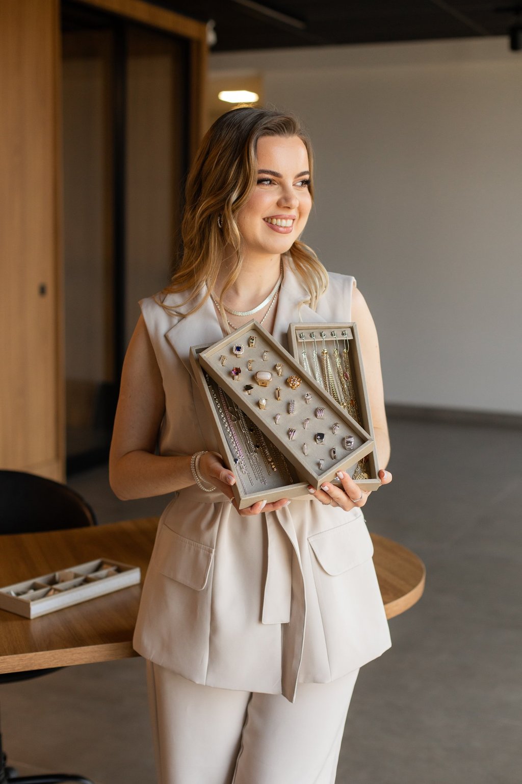 Nossa maleta contém uma seleção de joias banhadas a ouro 18k e prata, e aço inox.